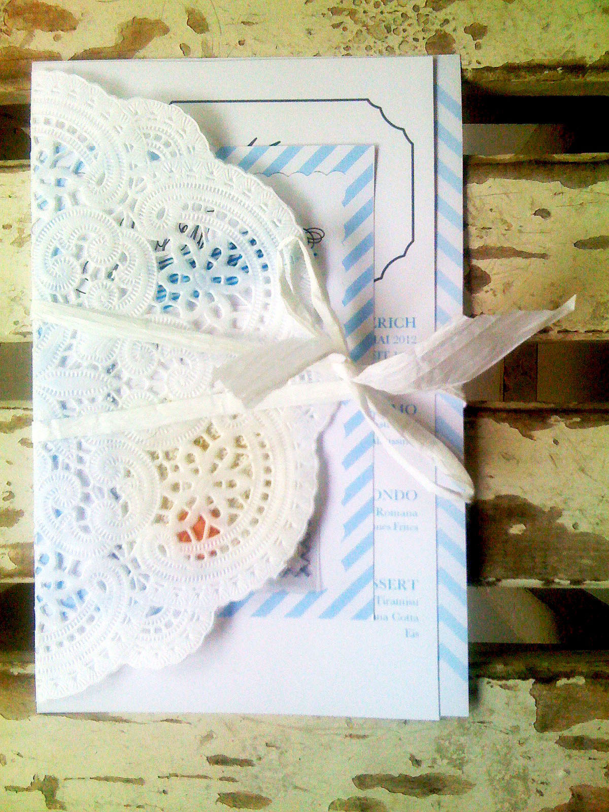 in Kuchen-Dolly als Umschlag einlegen und mit Schleifchen umwickeln
