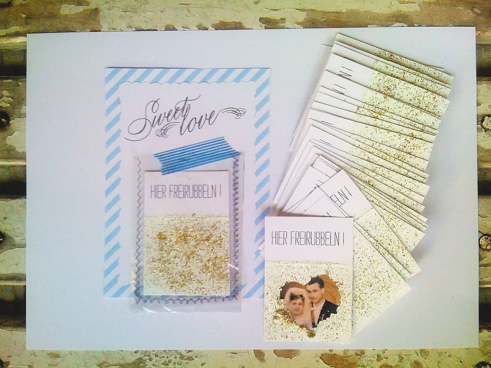 dann nochmal flugs ein personalisiertes Template runtergeladen, worauf später wiederum die kleinen durchsichtigen Tütchen mit den Rubbel-Losen drin, mit masking tape draufgeklebt werden