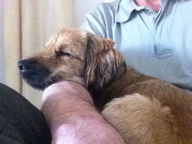 Frauchen schließt mich zum ersten Mal in ihre Arme....