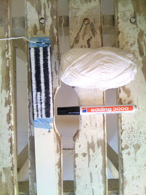 mit Edding oder Filzstift längs Blockstreifen auf die aufgewickelte Baumwolle malen