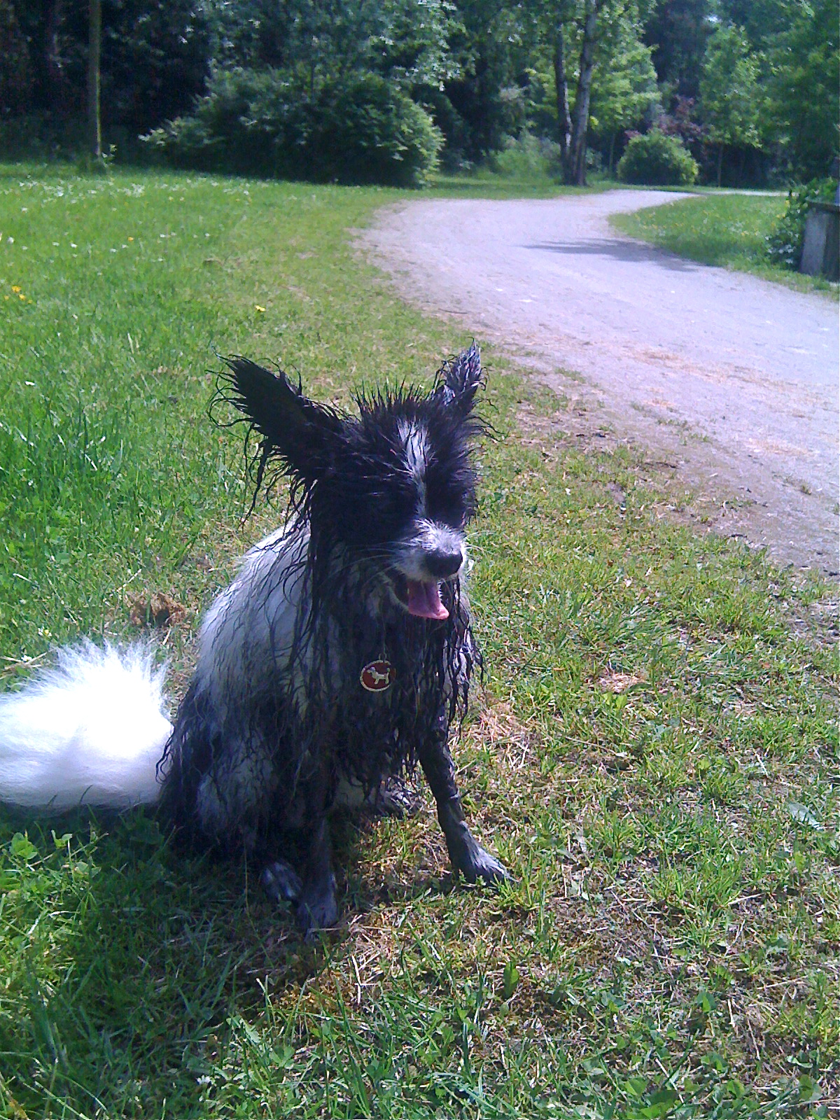 Frauchen hat gemeint dass ich stinke wie Sau und jetzt irgendwie aussehe wie ne gebadete Ratte die sich in Entenmodder gewälzt hat...